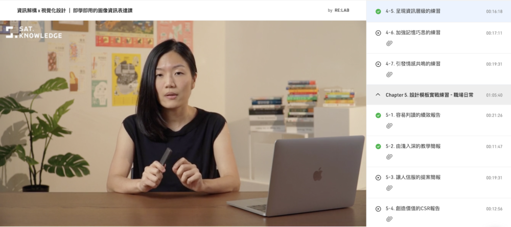 - 課程形式:線上學習平台知識衛星 SAT. KNOWLEDGE,長度 14 時 33 分