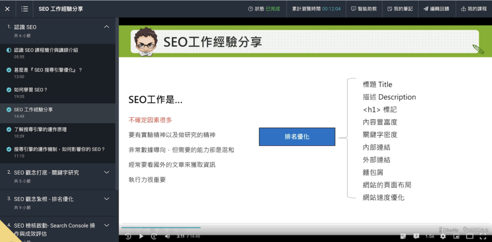【Harris親授,帶你從零起步學SEO搜尋引擎優化】這門課適合「從未接觸過 SEO 的人」,老師用淺顯易懂的方式讓你快速理解。唯一有點遺憾的的地方是,平台沒有提供字幕,而且老師講話時也有些麥克風雜音。不過我覺得這些都是小問題,畢竟台灣的 SEO 專業教學真的太稀缺了!