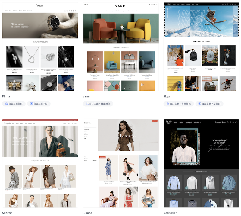 也可以到 SHOPLINE 官網預覽所有設計版型:https://shopline.tw/templates